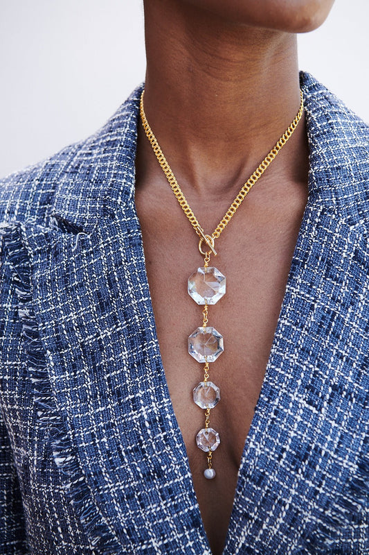 At The Plaza Grand Lariat Necklace in Gold or Graphite