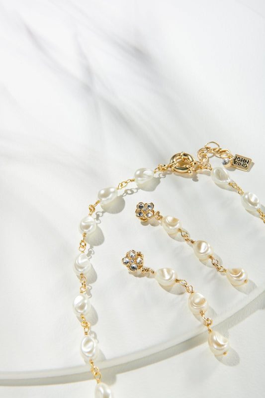 Petite Baroque Pearl and Crystal Post Earring; Rose, Gold & Silver
